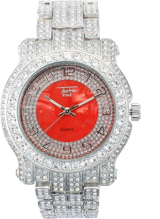 Amazon Com Mens Silver 45mm Iced Out Watch With Ruby Dial And Simulated Crystals Re Sizable Links Quartz Movement Watches Lush Boxing Day 2020 Us