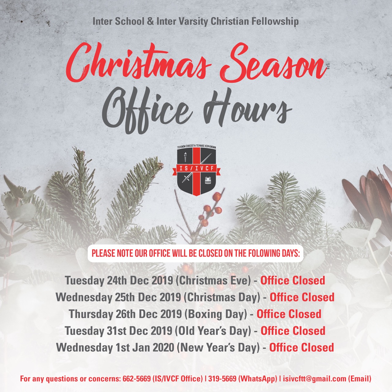 Isivcftt On Twitter Please Note Our Office Will Be Closed On The Following Days Tuesday 24th Dec 2019 Christmas Eve Wednesday 25th Dec 2019 Christmas Day Thursday 26th Dec 2019 Boxing Day Devonshire Mall Boxing Day Hours